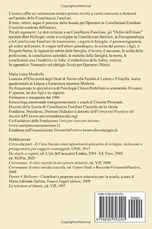 DESCRIZIONE: Cosa sono le Costellazioni Familiari? Una terapia? Una scienza occulta? O solamente “teorie non riconosciute”, come sostiene qualcuno? Da dove provengono le Costellazioni Familiari? Che attinenza hanno con la Psicogenealogia e la Ricerca Transgenerazionale? Chi può svolgere il mestiere di costellatore familiare? Ci sono regole per guidare una Costellazione Familiare? Si può studiare da “costellatori”? Lo scopo di questo libro è di offrire allo studente un vedemecum teorico-pratico adatto a chi vuole formarsi come costellatore familiare.